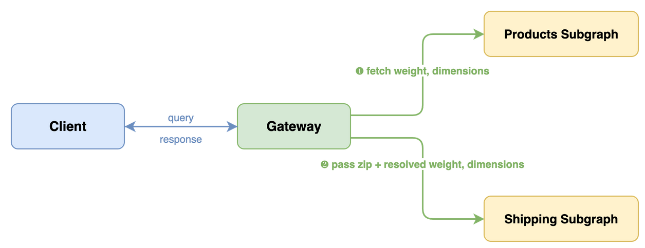# Shipping subgraphtype Product { id: ID! deliveryEstimate( zip: String! dimension: ProductDimensionInput! @require( field: """ { weight, length: dimensions.length, width: dimensions.width, height: dimensions.height } """ ) ): Int!}