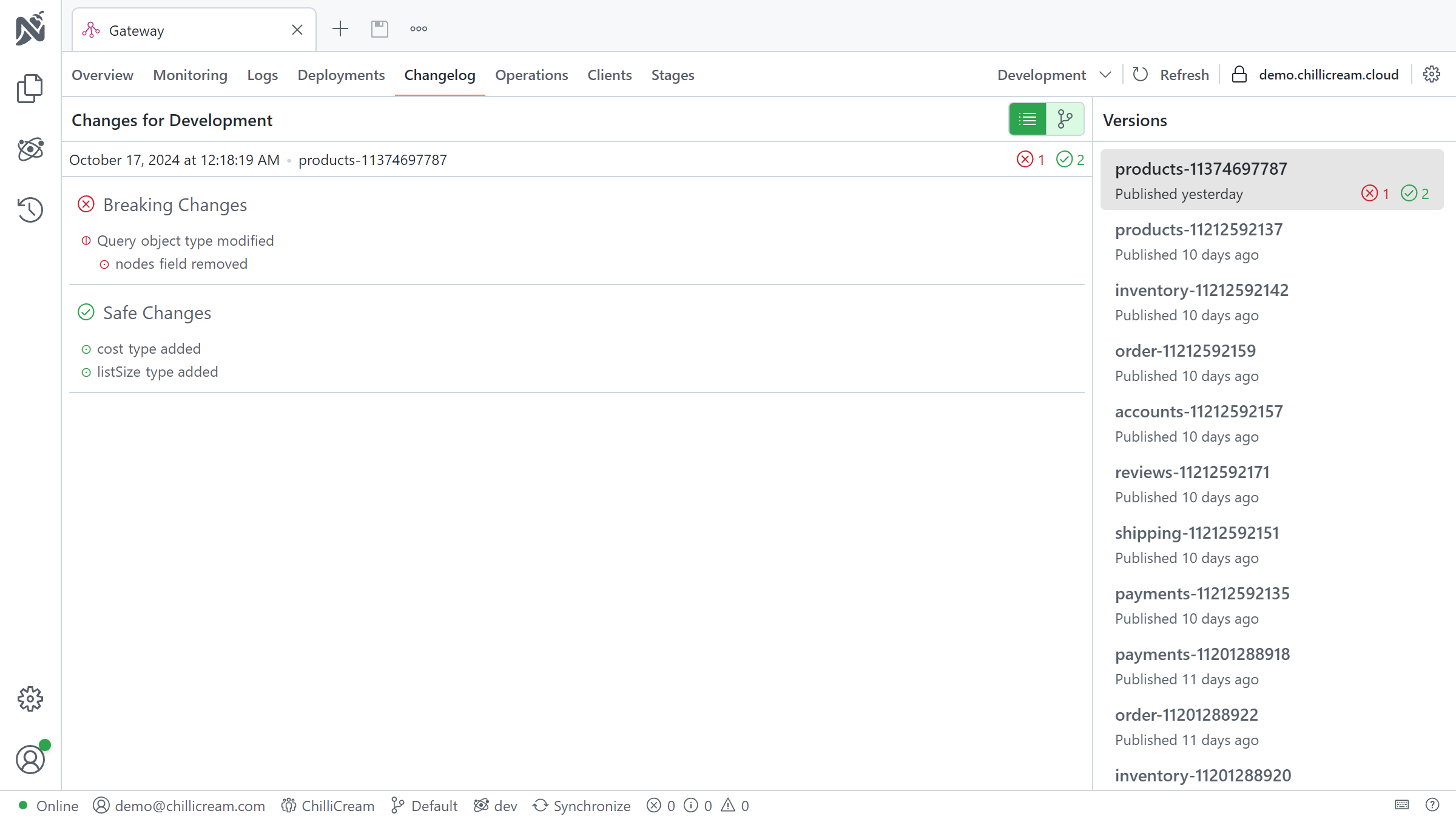 - Safe: These changes don't affect the existing functionality. Examples include changes to descriptions or adding a new optional field to a type. Safe changes are generally backward compatible and don't require modifications to existing clients.