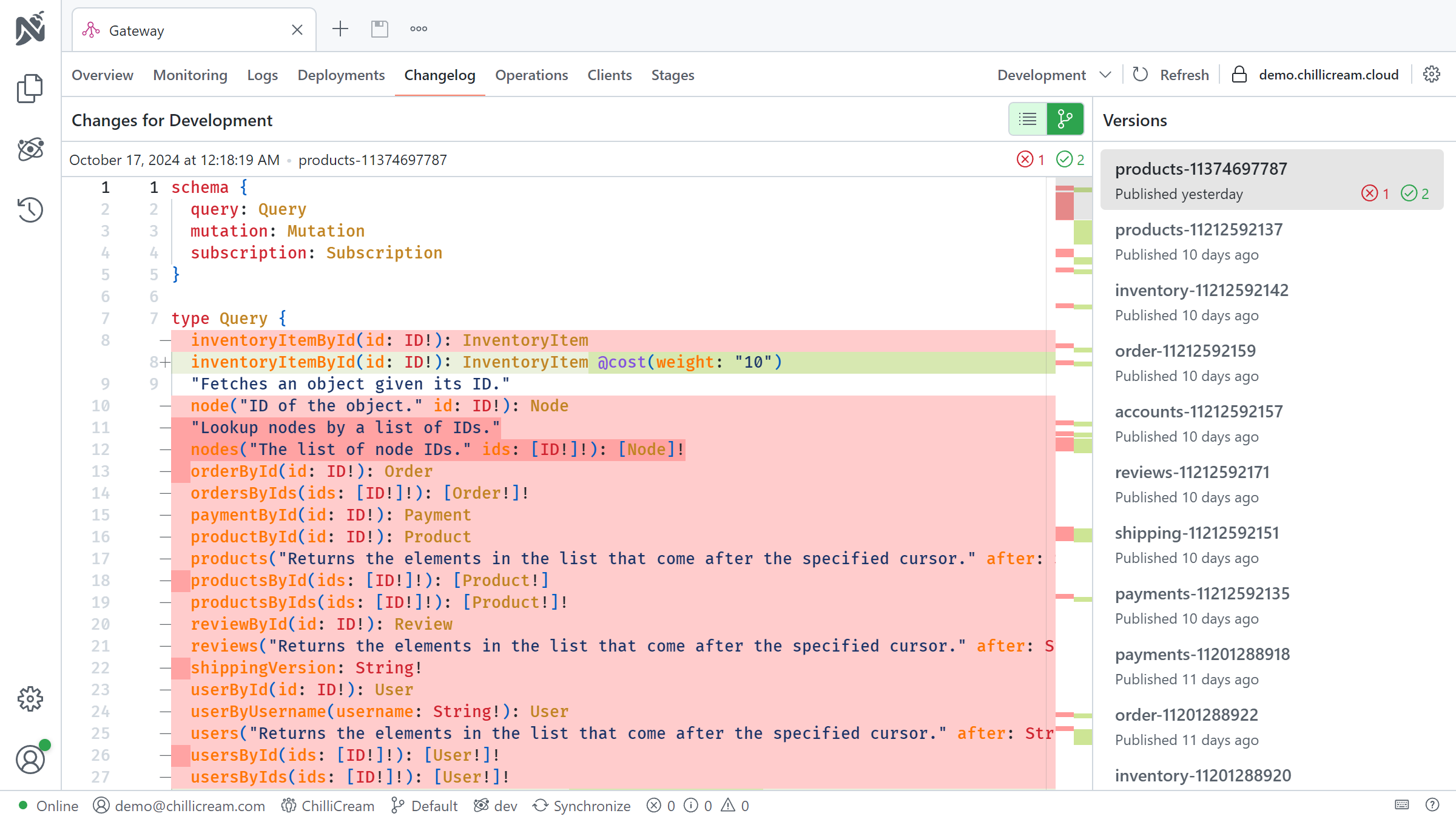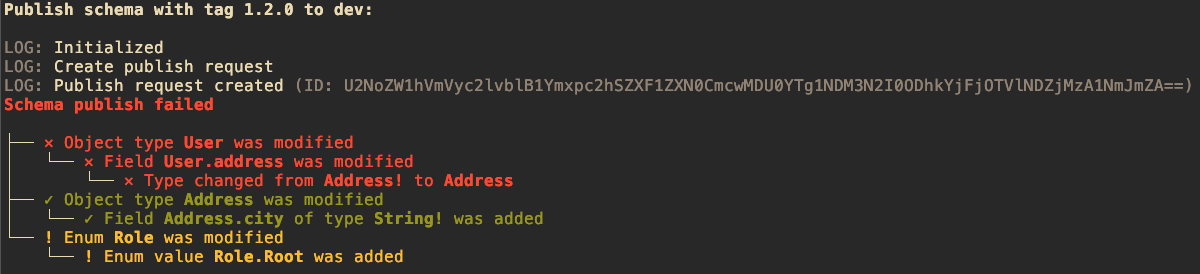 - Breaking: These changes will break existing functionality if the affected parts of the schema are being used by clients. Examples include changing the type of a field, adding a required field to an input type, removing a field, or adding a new required argument to a field or directive.