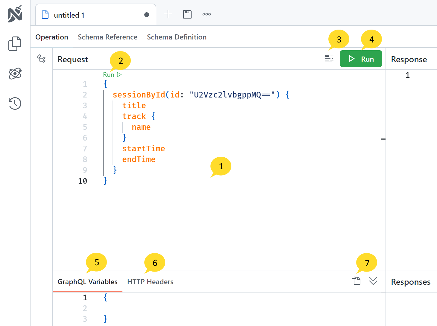 The Run Button enables you to execute your query with a single click. Similar to the Inline Run Button, clicking this button will send your query to the GraphQL server, and the response will be shown in the Response Pane.