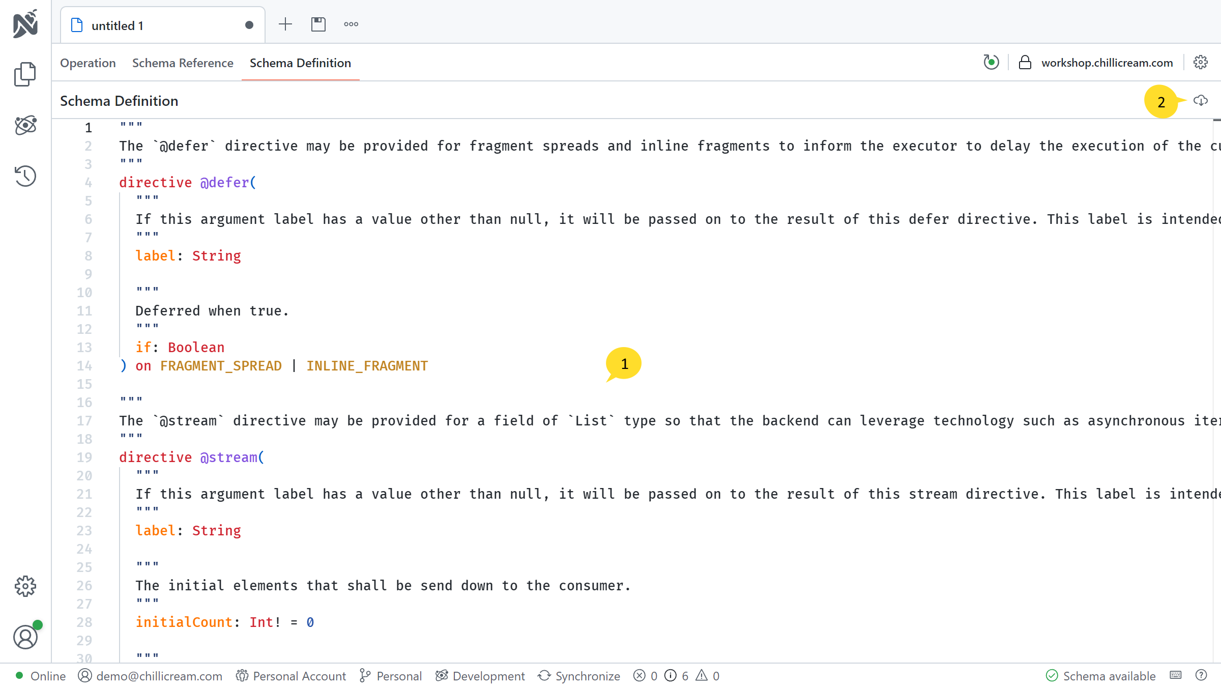The Schema Definition feature in Nitro provides you with access to the raw Schema Definition Language (SDL) of your GraphQL server. This section explains how to view and download the SDL using Nitro.