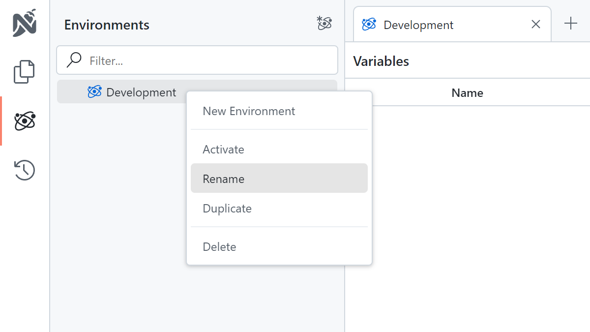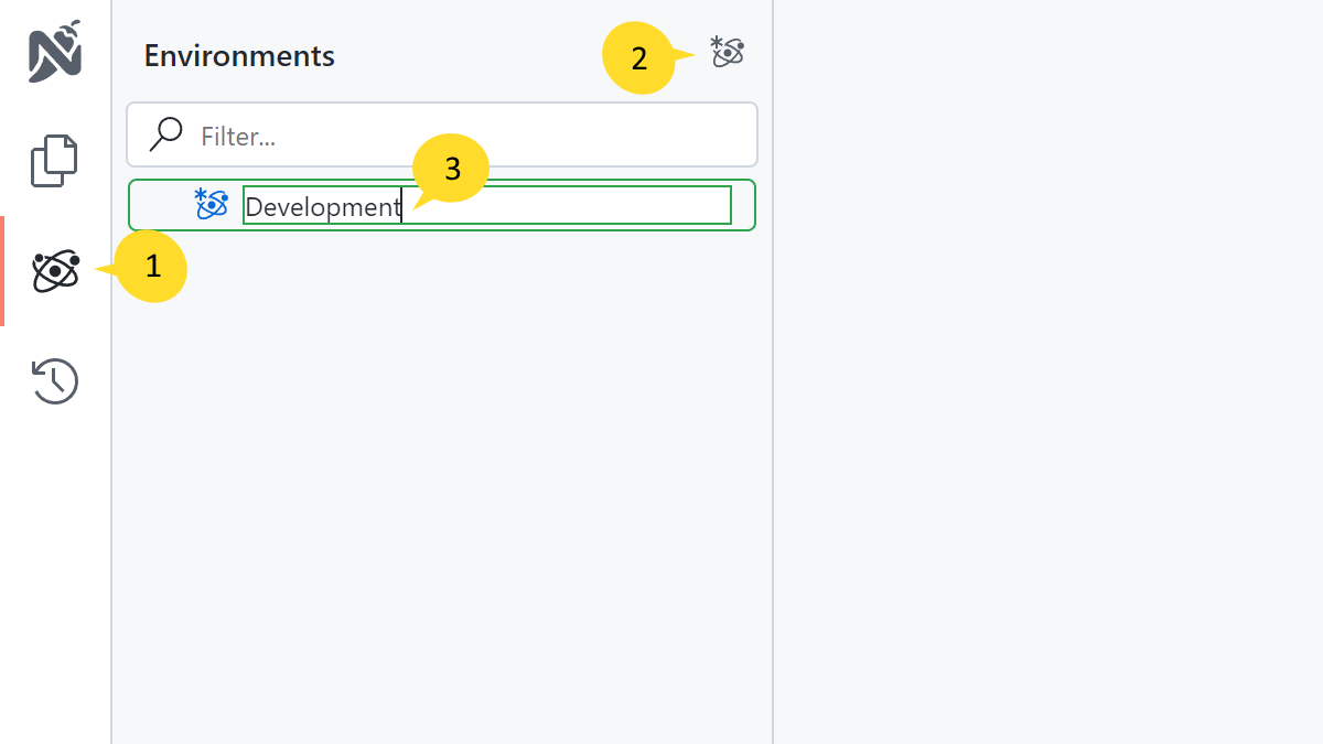 - Click on the environment icon on the left side of your screen.