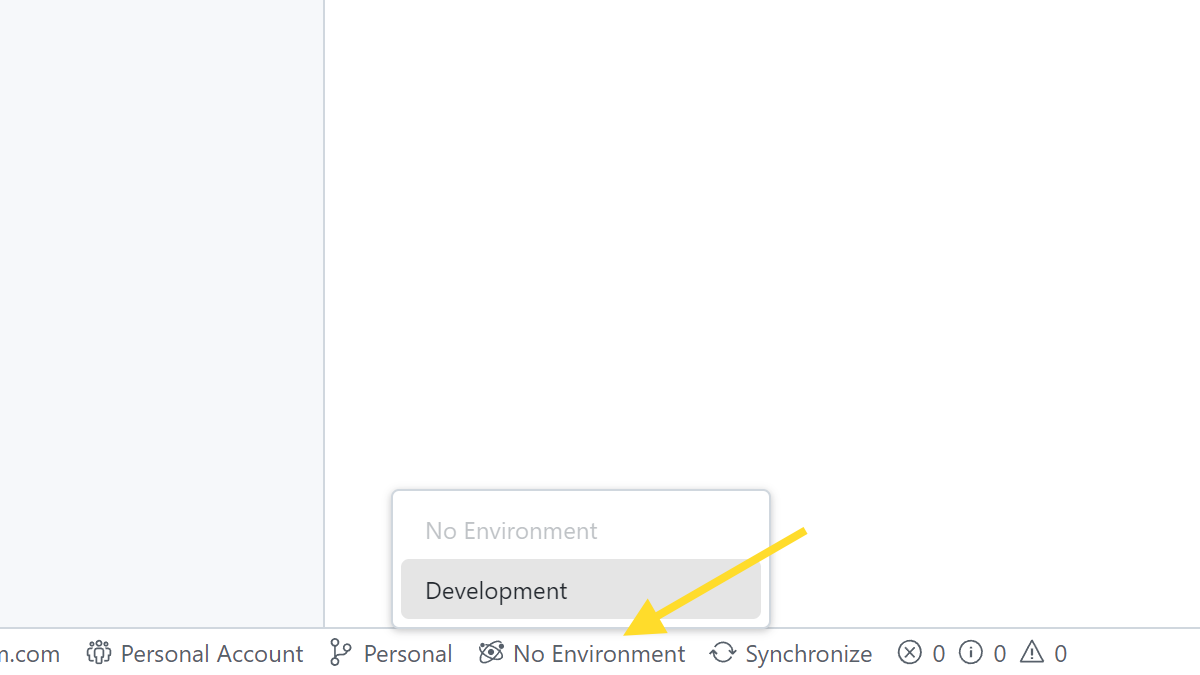 To switch environments, click on the environment name in the status bar. A dropdown menu will appear, listing all available environments.