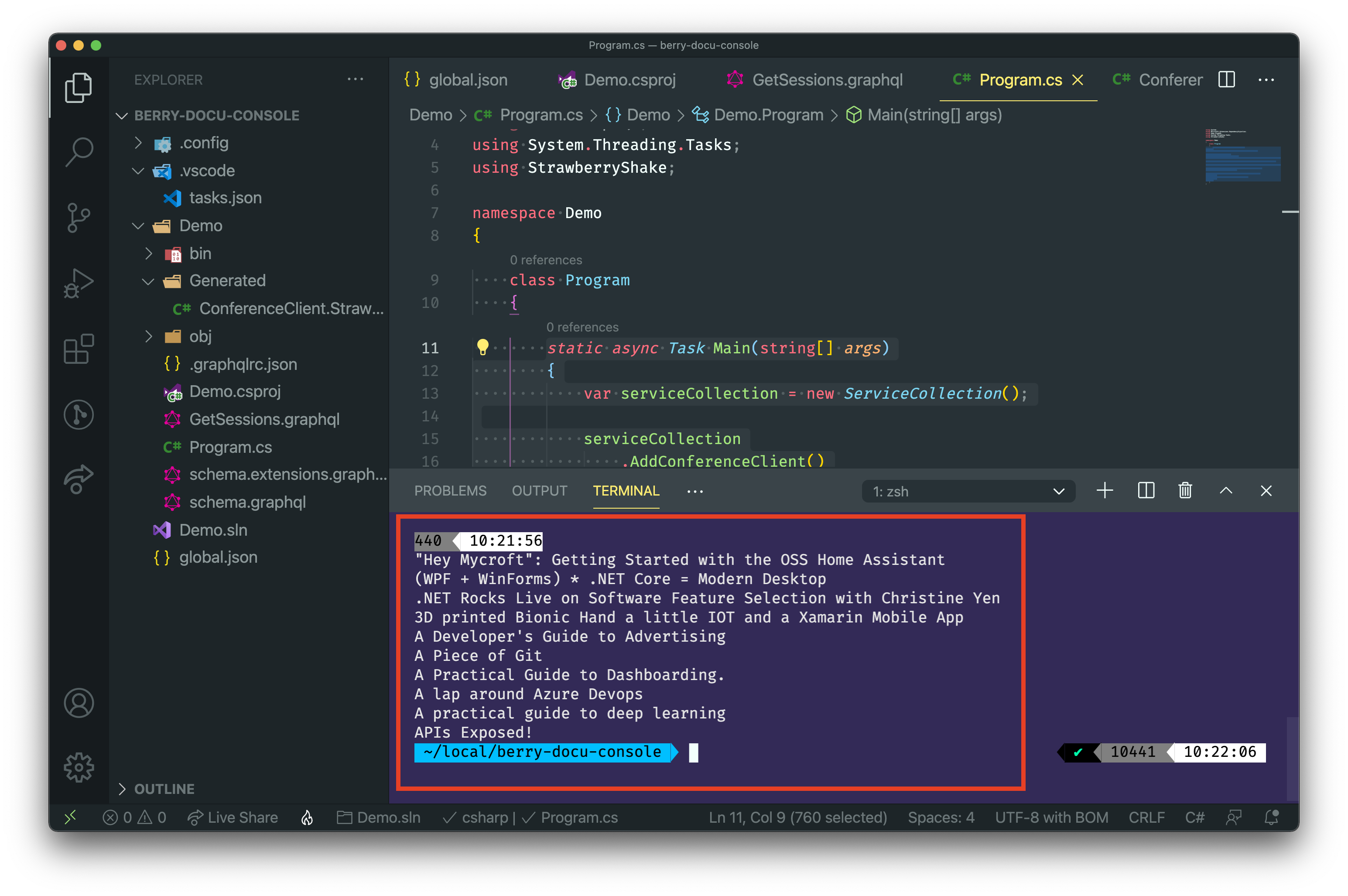 dotnet graphql init https://workshop.chillicream.com/graphql/ -n ConferenceClient -p ./Demo